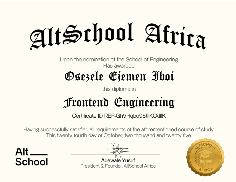 I'm an Alumni of AltSchool Africa - School of Engineering